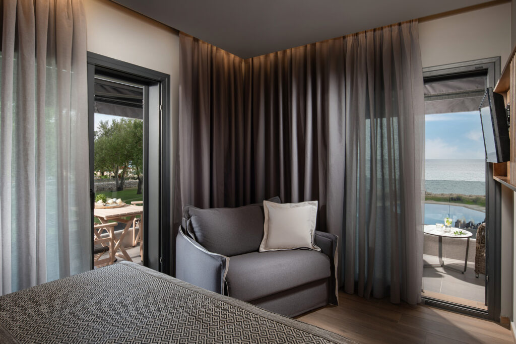 These five tastefully furnished deluxe studios are new and have every comfort that you need. They are eqipped with a double bed, a sofa bed, a well equipped kitchenette, a bathroom with shower / WC and a balcony with garden furniture and sea view.