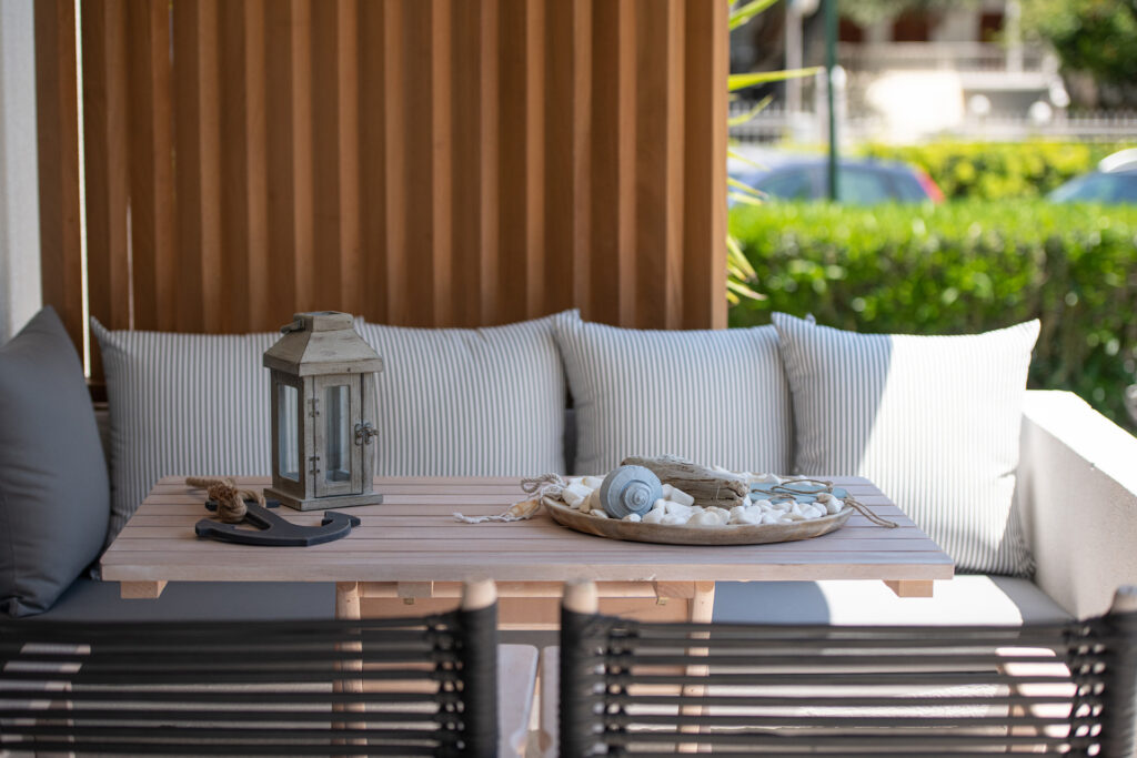 These five tastefully furnished junior suites are new and have every comfort. They are eqipped with a double bed, a sofa bed, a well equipped kitchenette, a bathroom with shower / WC and a balcony with garden furniture and sea view.