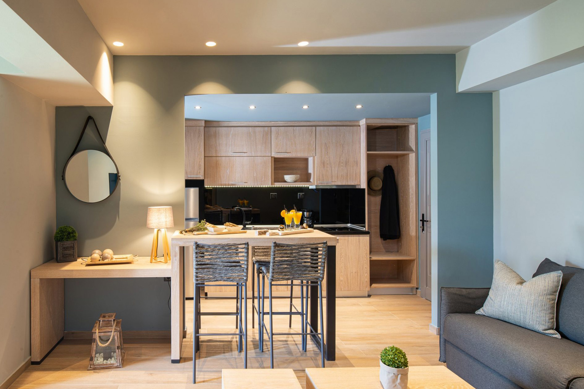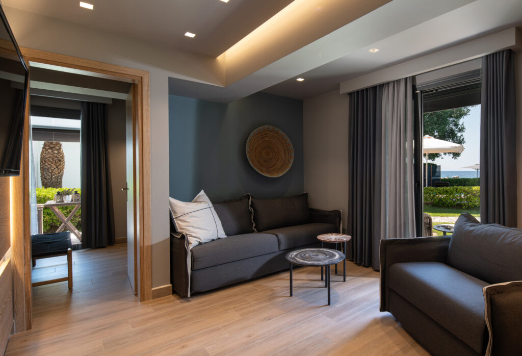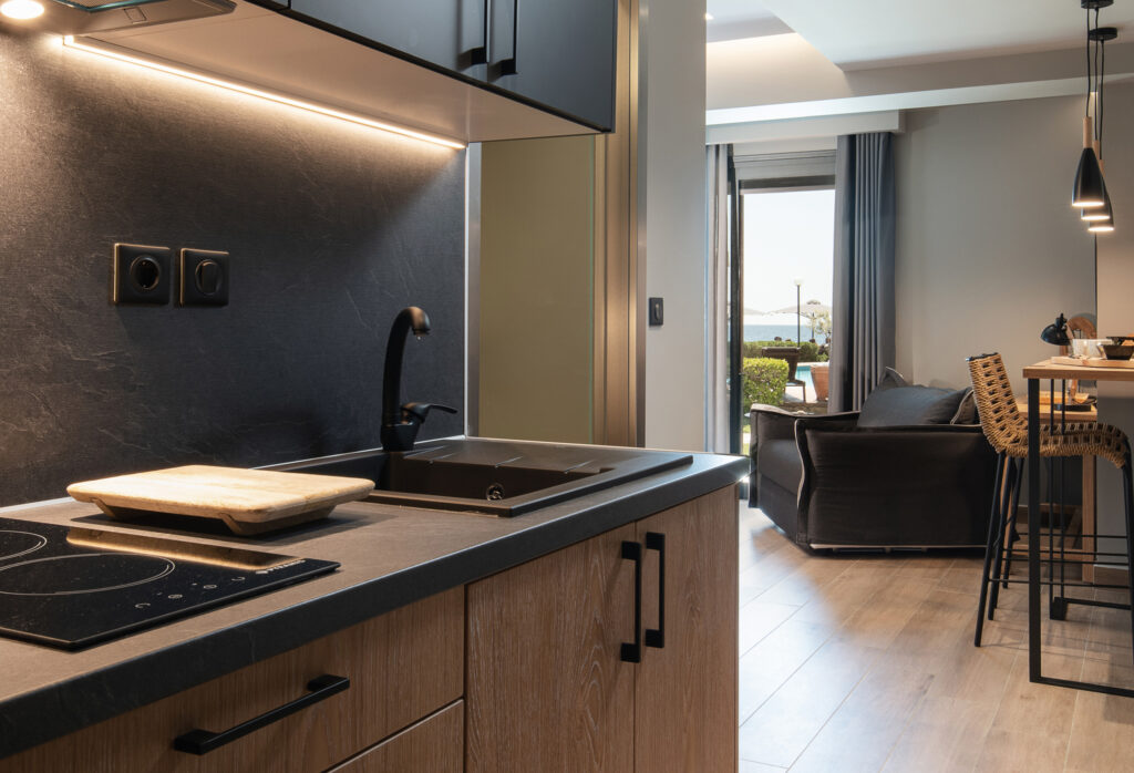 These four tastefully furnished superior suites are new and offer every comfort; They have a separate bedroom and a living room, a well equipped kitchenette, a bathroom with shower / WC and a balcony with garden furniture and sea view.